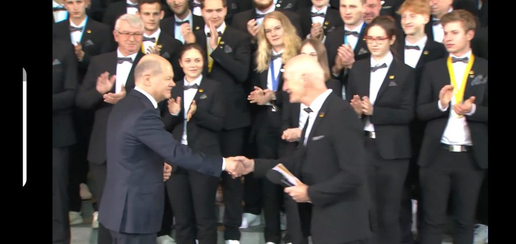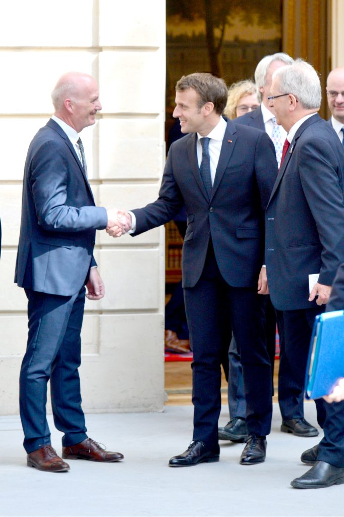 Présentation de l’Equipe de France des Olympiades des métiers. Worldskills Kazan 2019 et présentation de la candidature de la France aux finales internationales à Lyon en 2023. En présence d’Emmanuel Macron, président de la république, Murielle Pénicaud, ministre du travail, Blanquer, ministrer de l’Education. Président Worldskills France Michel Guisembert, WSI, Simon Bartley. Photos : Laurent BAGNIS